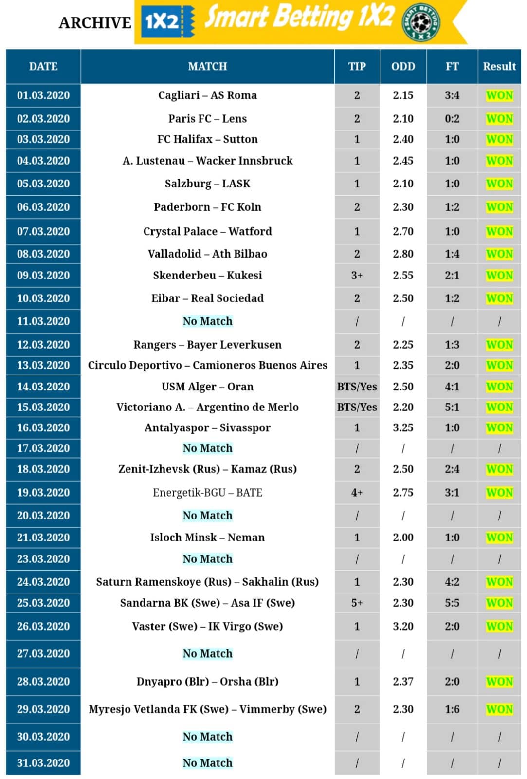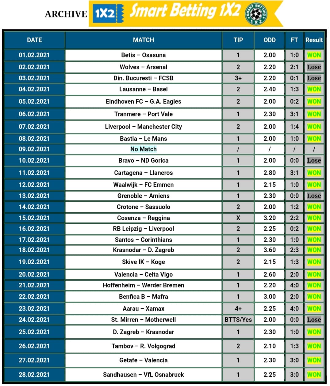 ARCHIVE Daily VIP Football Matches Smartbetting1x2